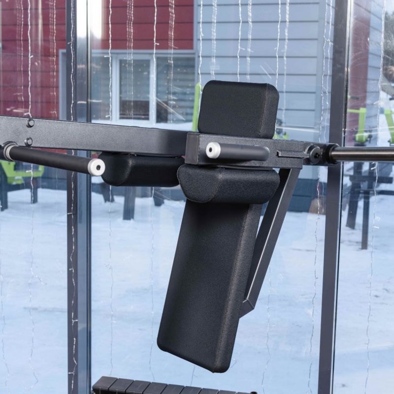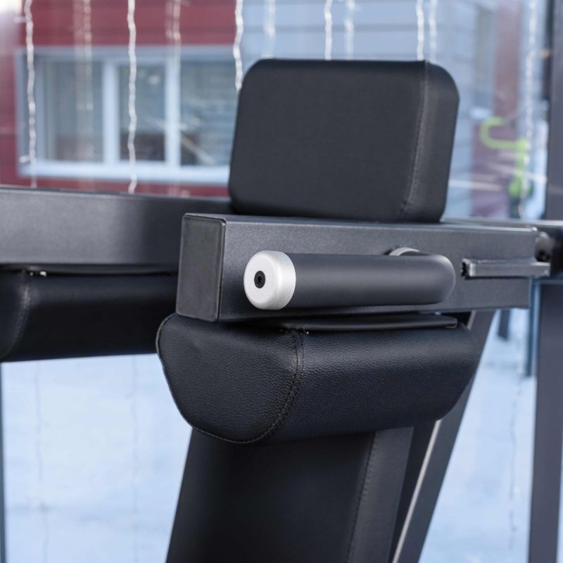 Тренажер обеспечивает глубокую и контролируемую траекторию приседа, позволяя эффективно прорабатывать квадрицепсы, ягодичные мышцы и заднюю поверхность бедра. Регулируемая по углу платформа помогает подобрать оптимальное положение стоп, а высокая спинка и подушки под плечи надёжно фиксируют корпус на протяжении движения. Стартовый фиксатор и демпферы делают тренировку безопасной, плавной и комфортной как для опытных спортсменов, так и для пользователей с разным уровнем подготовки.