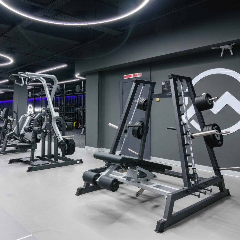 - Накопители для хранения и работы со свободными весами оборудованы кольцами из плотной резины для предотвращения соприкосновения дисков с рамой тренажера.