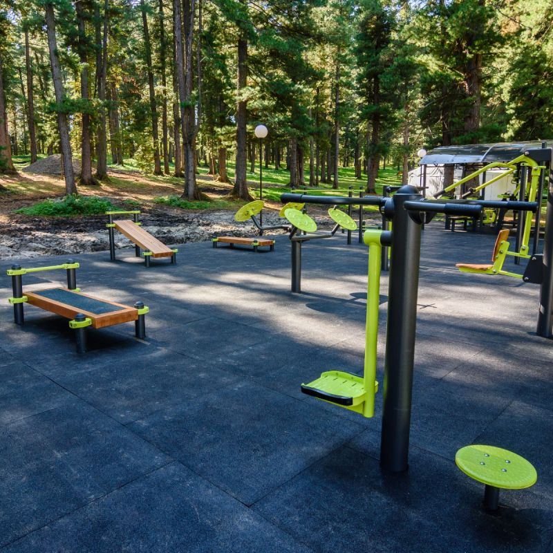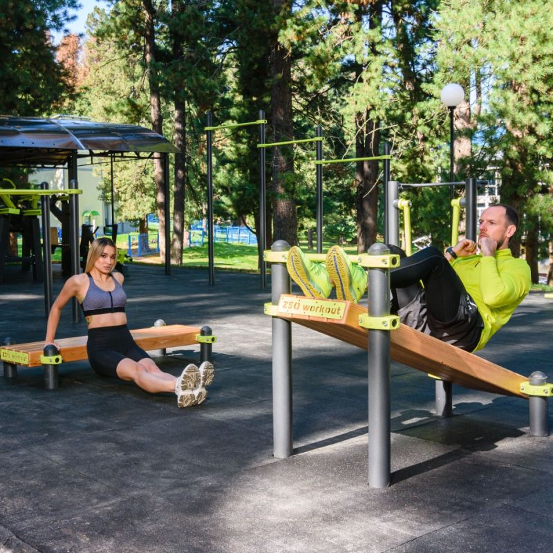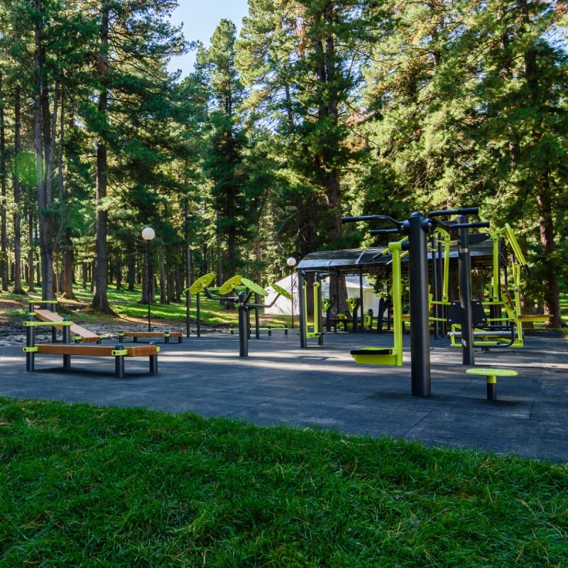 Площадка представляет собой универсальный спортивный комплекс, сочетающий тренажёры Force и Smart, а также воркаут-зону и зону подготовки к ГТО. Силовые тренажёры Force позволяют выполнять жим лёжа и жим вверх, приседания, становую и наклонную тягу, прорабатывать мышцы спины, ног и корпуса – их биомеханика максимально приближена к залу, но адаптирована для улицы. Тренажёры Smart обеспечивают кардио- и оздоровительные нагрузки: «Имитация ходьбы», «Эллипсоид» и «Маятник-твистер» развивают выносливость и координацию, а «Тяга сверху / Жим от груди» и «Тренажёр для плечевого пояса» укрепляют верхний плечевой пояс.