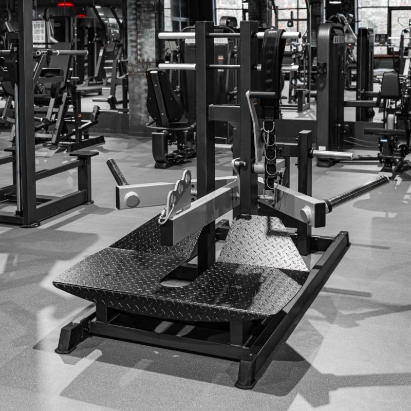 - Широкие платформы для ног выполнены из листового металла с рифлением для возможности занять разное исходное положение (широкая / узкая постановка ног) и защиты спортсмена от скольжения при выполнении упражнения.