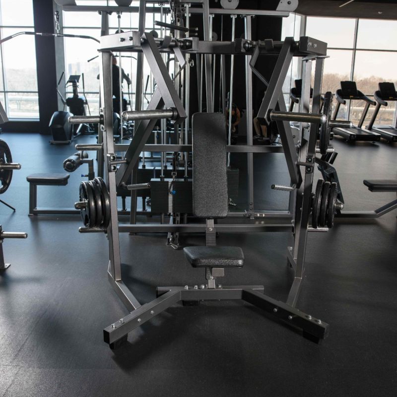- Тренажер имеет пять опорных ножек из плотной резины, обеспечивающие устойчивое положение и оптимальную высоту для доступа к накопителям для хранения весов.